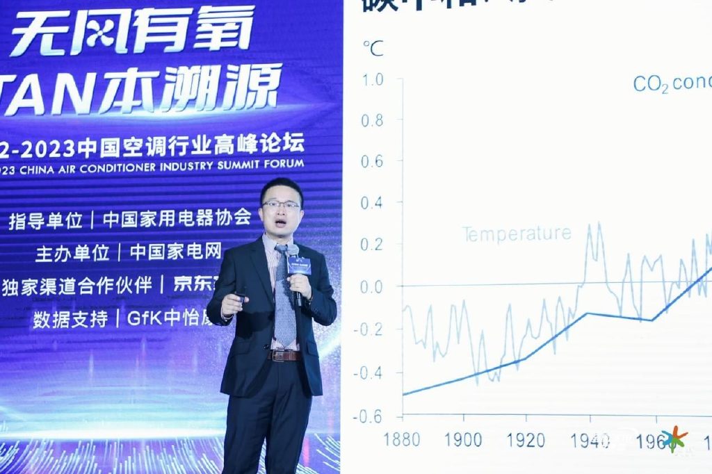 2022年8月24日,由中国家用电器协会指导、中国家电网主办的“无风有氧 TAN本溯源——2022-2023中国空调行业高峰论坛”在哈尔滨举行,来自奥克斯、卡萨帝、长虹、COLMO、EBC英宝纯、GMCC、海尔、海立、海信、科龙、康佳、Leader、美博、美的、松下、TCL等主流家用空调品牌与核心零部件制造企业代表,以及论坛独家渠道合作伙伴京东家电、数据支持机构GfK中怡康等齐聚一堂,共话“双碳”目标下空调产业的创新发展与使命担当。