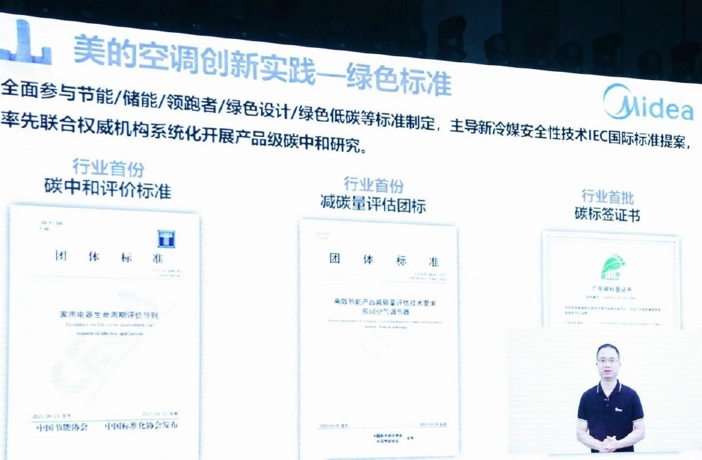 诚如李廷勋和谢南南所言,能效只是低碳的其中一环,想要最大程度减碳,需要贯穿空调产品的全生命周期。在此方面,包括美的、海尔、奥克斯、海信等越来越多的空调企业已经开始注重在制造层面或者说空调产品全生命周期内推进绿色低碳转型。以美的为例,2021年美的集团正式发布了绿色战略,围绕着绿色设计、绿色采购、绿色制造、绿色物流、绿色回收、绿色服务6大支柱,打造全流程绿色产业链。“其中,绿色设计是整个绿色战略的龙头和牵引”,美的空调创新研究院开发中心主任李金波表示,近年来美的空调在绿色设计方面积累了丰富的技术与产品创新实践,绿色技术方面持续在环保冷媒技术、全球超高能效技术,新一代制冷技术、蓄冷蓄热技术等方面进行了布局。“美的空调将持续通过技术创新、产品创新、标准引领,不断的扩大绿色产品供给,满足用户日益增长的美好生活需求,助推全行业绿色低碳转型。”