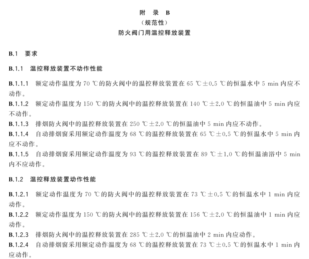 13)增加了防火阀门用温控释放装置温度试验。