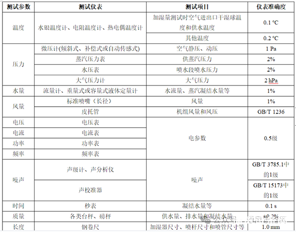7.2.4 测试仪表及对应的测试项目、仪表准确度应符合表9的规定。