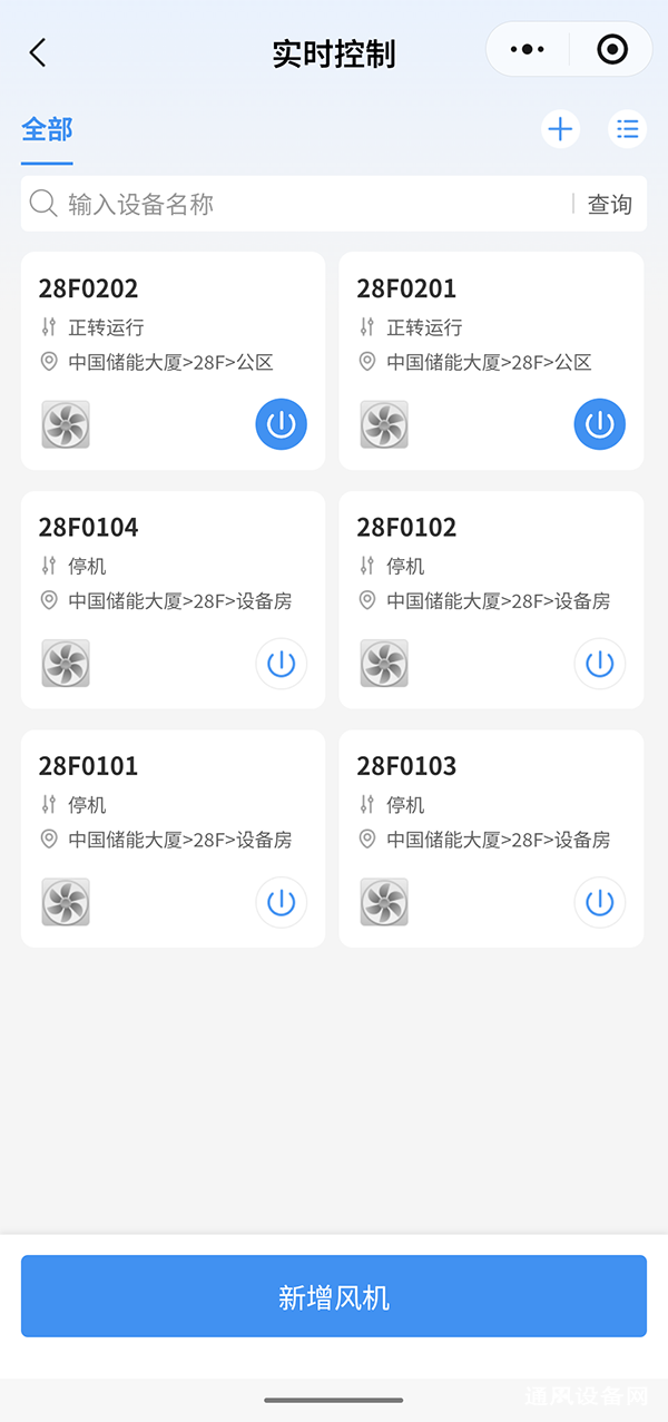 中国储能大厦风机改造前,原有的三相异步电机经过测试实际运行效率比较低、设计裕量大,管理模式为BA控制,无变频,只能进行开关控制,对风量无法精确控制。改造方案是:将原有电机更换为高效永磁同步电机,提高了电机运行效率;配套加装变频器,可根据大厦实际情况进行风机转速及风量的实时精准调节,彻底告别了过去“一刀切”的运行模式;增加风机电量精确计量,实时上传用电数据至楼掌门能碳管理平台,实现对能耗与设备状态的全程可视化管理;同时,系统可自检设备故障,一旦检测到运行异常,立即触发预警机制,有效防范故障发生,延长设备使用寿命。改造后,风机节能率达25%–50%。